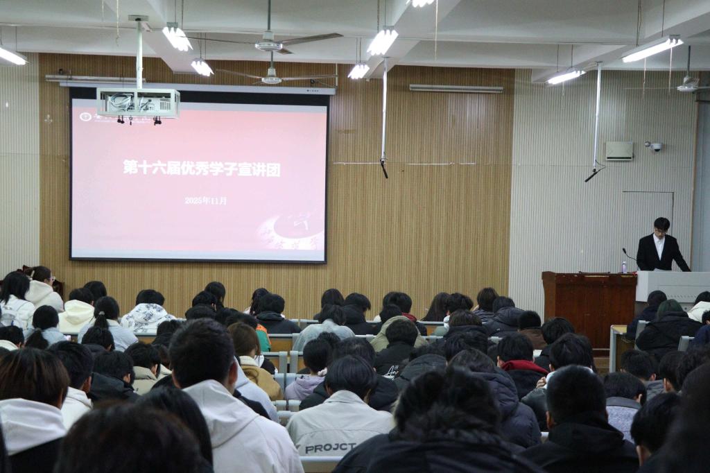 为帮助25级学生明确大学成长方向,11月18日晚上,我院于建工楼4楼阶梯教室开展第16届优秀学子经验分享宣讲会,三位优秀学子宣讲团成员担任主讲,25级全体学生参与。