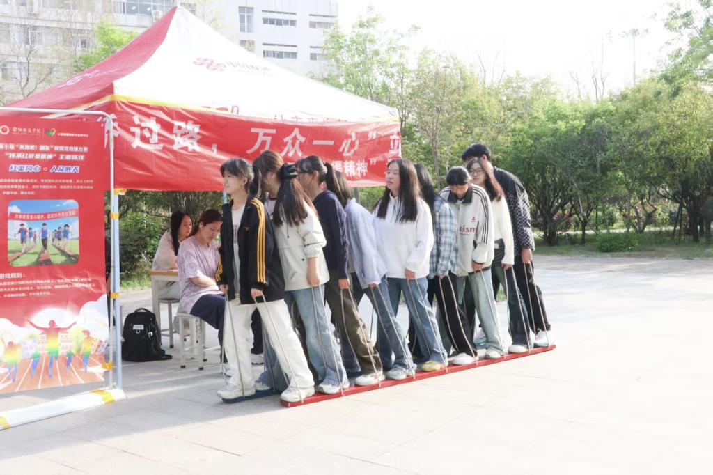 本次赛事以心理健康为主线,融合趣味性与互动性,设置两条特色路线、共12个趣味关卡。路线一“奔跑传承精神,接力筑梦天河”围绕红色文化与奋斗精神设计,包含开山破壁精准投掷、同心共步时光赛道、滴水筑渠一脉传承、红歌接力、历史事件排序、搭桥过路等项目,让同学们在竞技中感悟红旗渠精神与长征精神,传承红色血脉;路线二“奔跑照亮青春,阳光活力校园”聚焦团队协作与青春活力,设置甲骨文投壶、你画我猜、绳索搭积木、竹竿传递、气球接力、U型槽传珠等趣味关卡,在游戏中增进同学默契,释放青春活力。建工学子在一个个项目中展现出了永不言弃的拼搏精神和携手共进的团队精神,充分体现了建工学子的青春活力和积极向上的精神面貌。