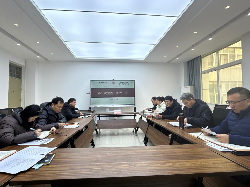 2026年1月23日上午,我院党委在建工楼小会议室召开本年度第三次党委(扩大)会议,专题部署学院党风廉政建设工作。会议由党委书记张玉峰主持,党委班子成员及各党支部书记参加会议。