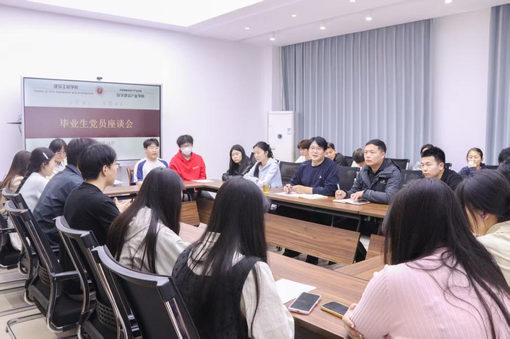 为深入掌握毕业生党员思想动态,精准对接毕业去向需求,扎实推进就业指导与服务工作,4 月 10 日下午,我院在建工楼218会议室召开毕业生党员座谈会。学院党委书记张玉峰、毕业班辅导员李媛媛、孔令冉与全体毕业生党员参会。