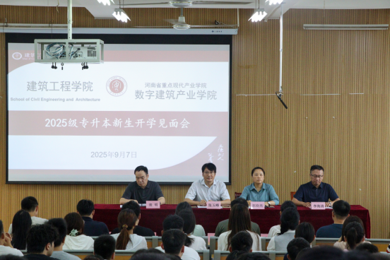 9月7日下午,我院于建工楼阶梯教室举办2025级专升本新生开学见面会。学院领导班子、全体辅导员老师、班主任老师出席,2025级专升本全体新生参加。
