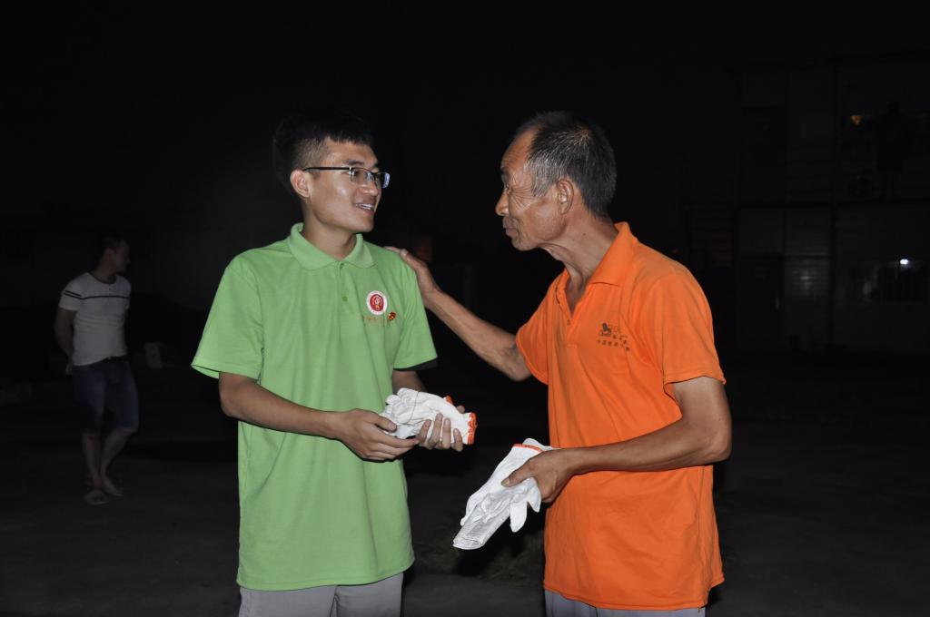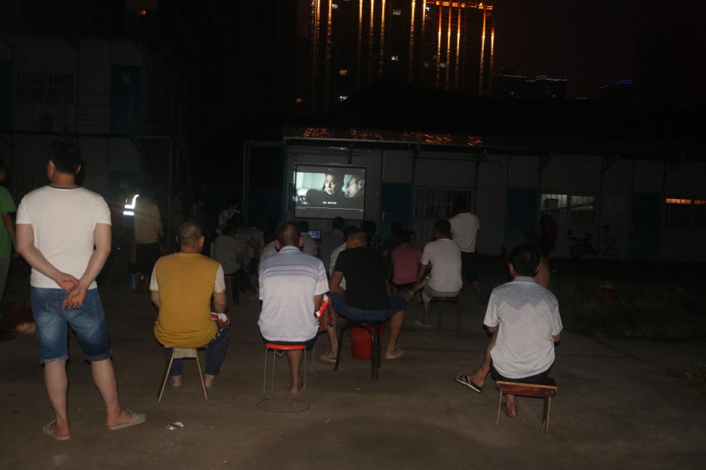 一切准备就绪后,队员们为工人们播放事先准备好的电影《湄公河行动》。在工人们观看电影的过程中,小团青不仅向工人们发放手套、毛巾等生活物品,还关心他们的日常生活。播放结束后,工人们跟团队成员促膝长谈,其中,一位工人叔叔说道:“俺们都是只身一人来到工地打工,住的地方没电视,平时下班后就吃吃饭,洗洗衣服,完了之后就去休息,想不到今天晚上大家还可以看个电影”。小团青的心里充满了心酸,同时,他们又感到很满足。