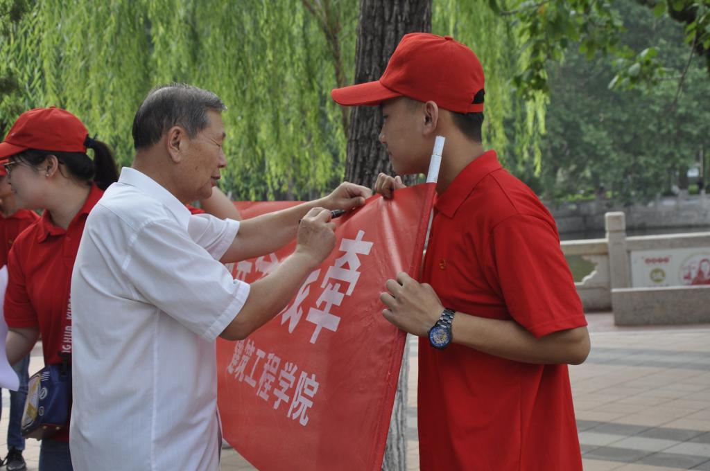 为了增强市民安全出行的意识,7月11号下午,我院小红帽交通志愿服务队来到人民公园进行以“文明交通两相连,生命安全一线牵”为主题的宣讲活动。