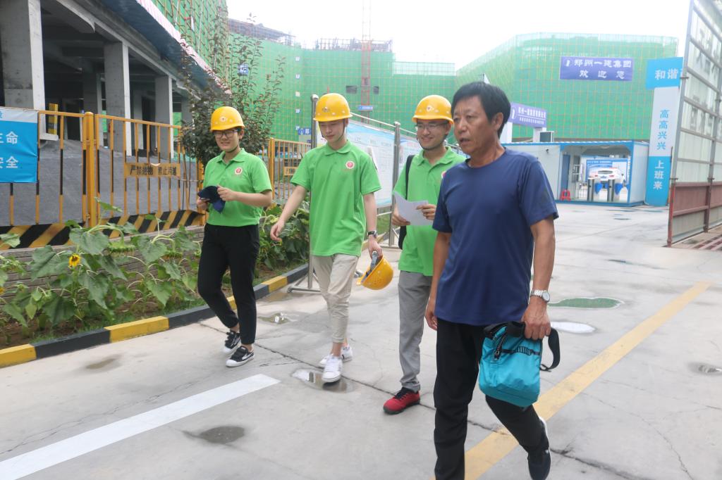7月8日上午,我院暑期实践工地小团青志愿服务队的成员们身着志愿者服装,带着安全帽,以饱满的精神状态开始了走访工地的旅程。