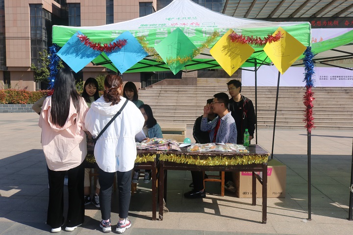 为了更好地进行以“阳光心态,积极生活”为主题的大学生心理健康宣传月的工作,我院于4月14日在文鼎广场举办了由大学生心理发展联合会及多个学院组织的解忧杂货铺活动。