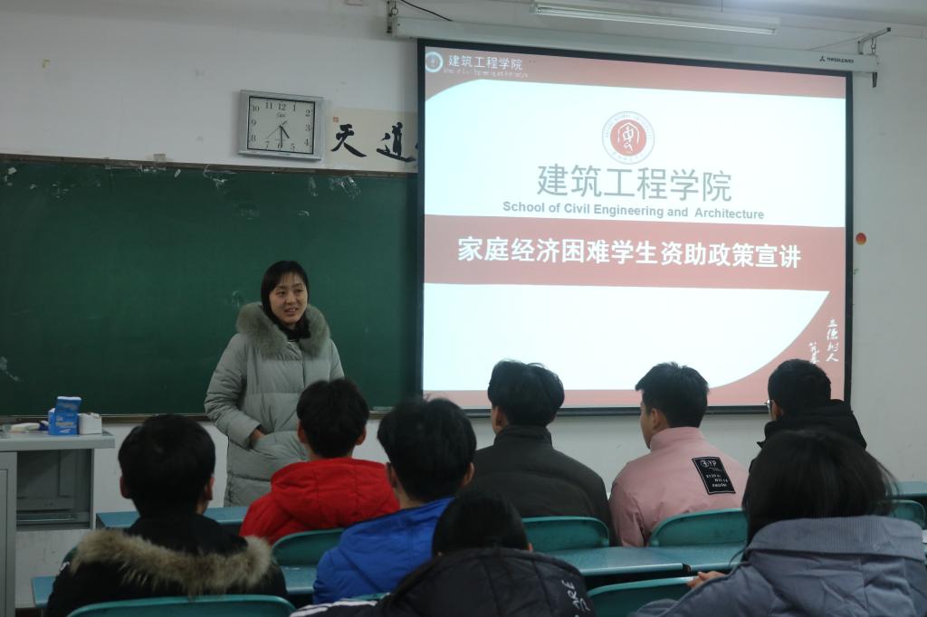 为响应学校号召,贯彻落实高校资助政策,做好精准资助,解读国家和学校的资助政策,3月17日,我院于建工409教室开展家庭经济困难学生政策宣讲。本次宣讲由辅导员赵洁老师主持。