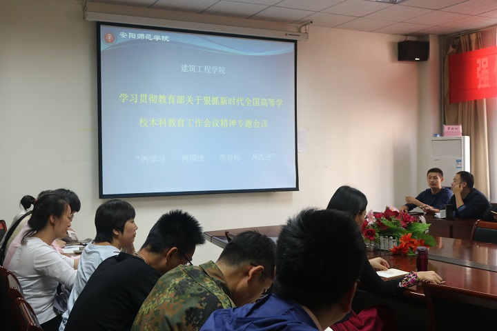 9月28日下午,我院在建筑工程学院会议室召开学习贯彻教育部关于狠抓新时代全国高等学校本科教育工作会议精神专题会议。会议由我院原新生副院长主持,全体教职工参加会议。