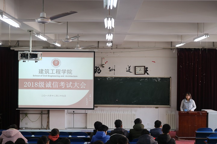 为严肃考风考纪,加强我院学风建设,提高同学们对考试的积极性。近日,我院于建工阶梯教室召开诚信考试动员大会。18级全体学生参加此次大会。
