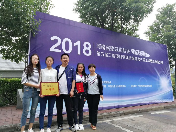 9月14日至16日,“广联达杯”河南省第五届工程项目管理沙盘暨第三届工程造价技能大赛在河南城建学院举行。我校建筑工程学院选派了两个团队共6名选手参赛,由刘玉、张晓兵老师指导,高智慧、马骁、慕世爱组队获得“工程项目管理沙盘”一等奖,由单贺明、张晓兵老师指导,阴苹嘉、李阳、袁博文组队获得“工程造价技能”二等奖。