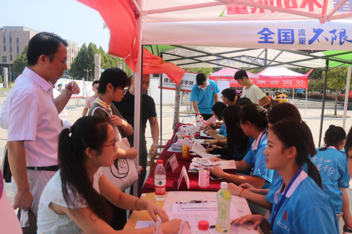 为确保迎新工作高效有序的进行,让我院新生顺利报到入学。9月8日上午,我院迎新工作在文鼎广场建工大本营正式开始。我院副院长原新生,学工办主任兼2017级辅导员姚恩锋,2015级辅导员赵洁,及2018级辅导员李媛媛亲临现场指导迎新工作。学生会全体成员作为迎新团队主力积极开展迎新工作。