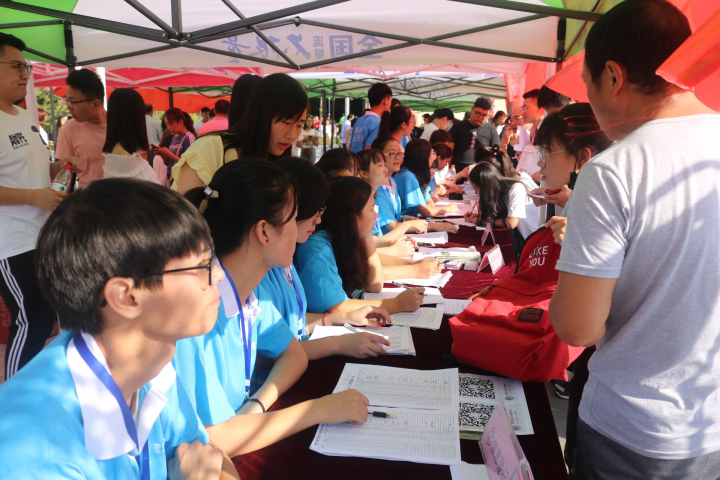 负责帮助新生搬运行李的志愿者不断往返于我院迎新大本营和各宿舍楼之间,在炎炎烈日下,汗流浃背亦无暇顾及。每来一位新生,大家都争先恐后地前去帮忙。我院领导老师一直坚守现场指导工作,并耐心的为有疑问的家长和学生进行解答。同时,为了表达对我院新生的欢迎,学生会准备了“幸运大转盘”游戏,让前来报道的新生抽取幸运礼物,使之燃起对大学生活的憧憬之意。