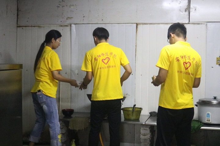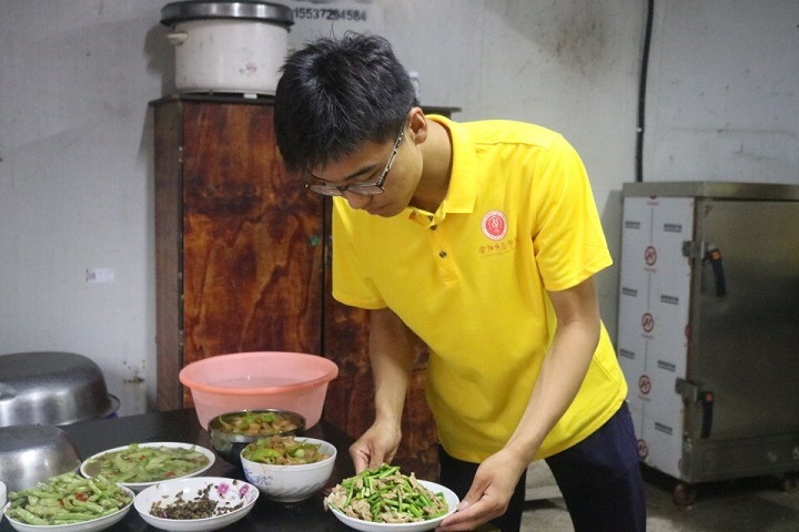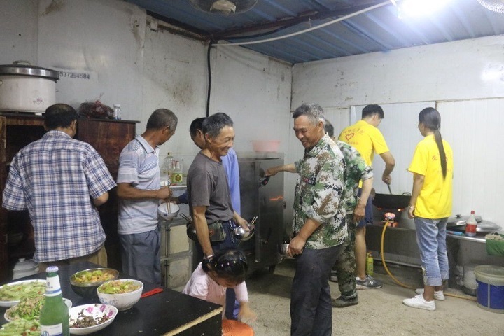 “宜未雨而筹谋,毋临渴而掘井”。来到工地,队员们首先与工地负责任人进行一番交流,了解工人的口味。当一切做饭素材准备到位,队员们开始忙碌,一切都在明确分工下有条不紊的进行。最终,在实践队员的共同努力下为工人们送上了美味的菜肴。在最后为工人们乘饭上桌时,工人们都纷纷表示对实践队员们的感谢。