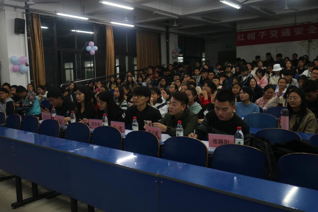 为了引起同学们对交通安全的重视与思考,并让同学们养成自觉遵守交通规则的良好行为习惯。11月4日晚,我院于建工阶梯举办了“红帽子交通安全知识竞赛”,我院18级全体学生到场前来观赛。