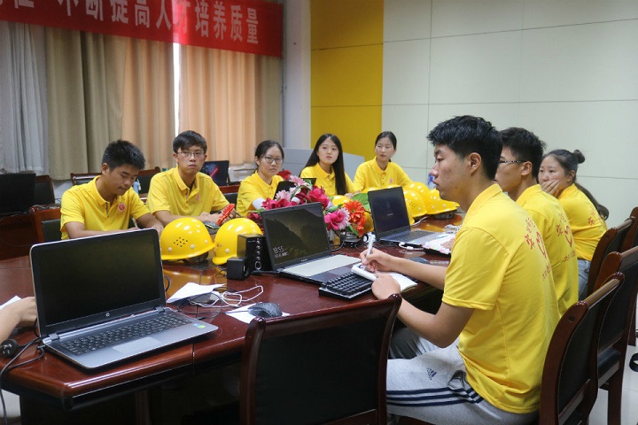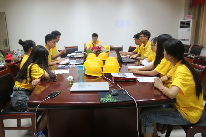 7月3日下午,“工地小团青”实践队全体成员在建工楼会议室进行商讨工作会议。