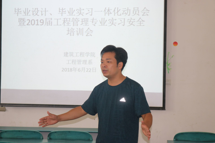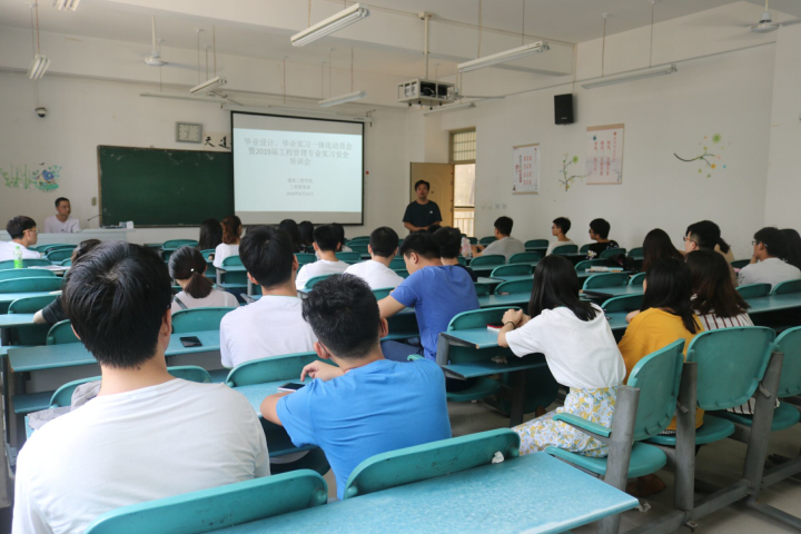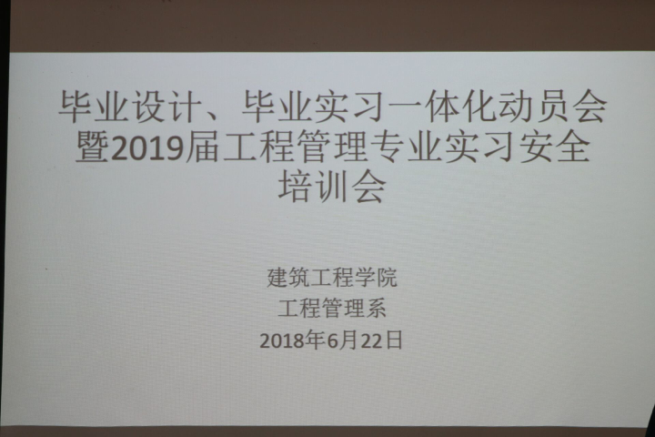 按照2015版人才培养方案以及学校教务处的相关要求,我院2015级学生将逐步进入实习与毕业论文(设计)一体化集中实践教学环节。为了做好此项工作,保证实习以及毕业论文(设计)的质量,提高应用型人才的培养质量,在前期第一次动员会的基础上,今天(6月22日)上午,我院在建工楼会议室和建工楼409教室分别为2019届土木工程专业和工程管理专业毕业生召开了实习与毕业论文(设计)一体化二次动员会。我院副院长肖建清,工程管理系主任侯纲、2015级学生辅导员赵洁,参加了本次会议。