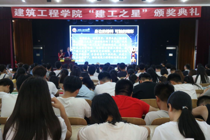 为了树立优秀大学生典型,促进优良班风、校风、学风的形成与和谐校园建设。6月14日下午,我院在和展楼修业厅隆重举行了“身边的榜样,可触的精彩”九届“建工之星”评选表彰暨榜样示范育人工程颁奖典礼。校团委书记赵江涛,校就业中心主任宋芳,安阳建工集团有限责任公司王兰兰董事,河南润安建设集团有限公司陈振林总经理,河南开祥建设集团有限公司王长征董事长,河南园艺园林绿化工程有限公司李琨瑛董事长,河南嘉信建筑设计有限公司贾晓明董事长作为受邀嘉宾莅临现场。我院副院长原新生、副院长肖建清以及我院的各位老师参加了本次活动。