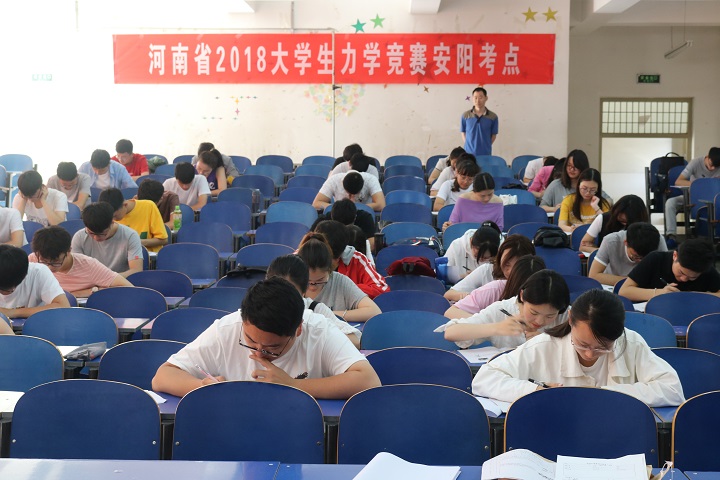 2018年5月27日上午8点30分,由河南省力学学会和河南省力学教学指导委员会共同主办的2018年河南省大学生力学竞赛,安阳地区考点顺利开考。全省23所高校1722名选手,分别在郑州大学、河南科技大学、河南理工大学、中原工学院、华北水利水电大学、安阳师范学院六个考点的24个考场参加角逐。来自安阳师范学院建筑工程学院、安阳工学院土木与建筑工程学院、安阳工学院国际教育学院、安阳学院建筑工程学院、安阳学院航空工程学院的118名优秀学子在安阳考点参加了本次竞赛。